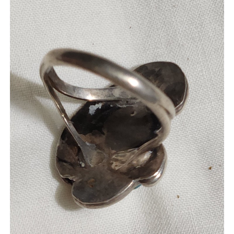 STERLING NAVAJO RING W, RED CORAL AND TURQUOISE S-7,WT.4.6 GRAMS
