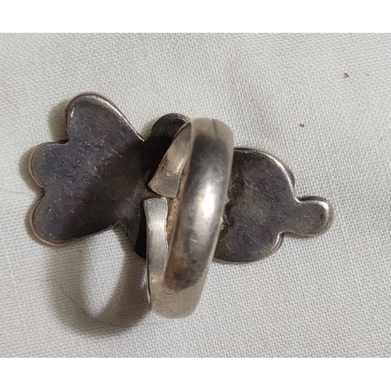 FABULOUS STERLING RING WITH TURQUOISE AND CORAL INLAY. RING SIZE 6. 4.2 GRAMS.