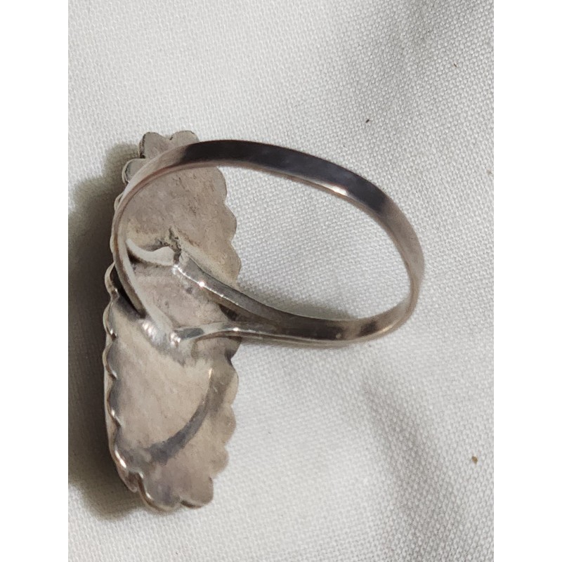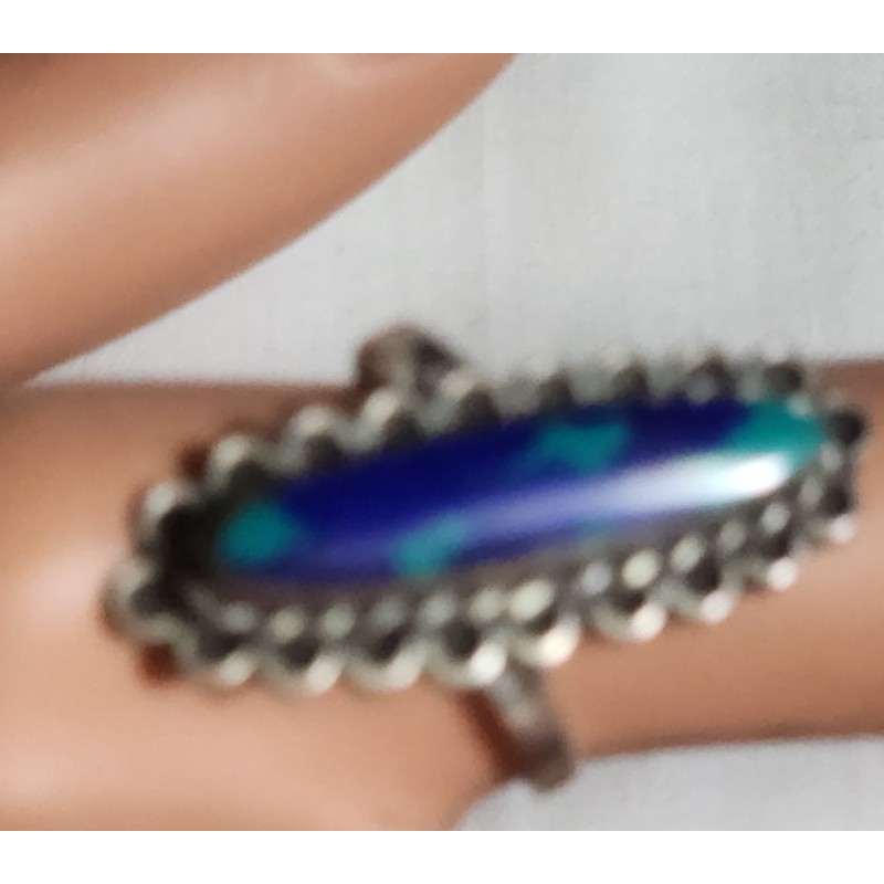 FABULOUS MEXICAN STERLING RING, WITH BLUE NATURAL TURQUOISE STONES. NARROW DESIGN STONE 1 INCH, GREAT COLORS.