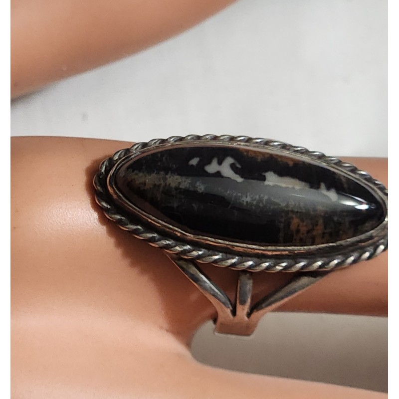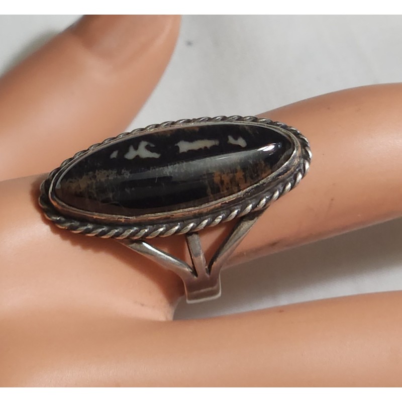THIS IS A VINTAGE BEAUTIFUL RING THE STONE IS NATURAL, IT'S AGATE OR MOSS AGATE. GREAT LOOK, RING SIZE 7.5. TOP IS 1 INCH.